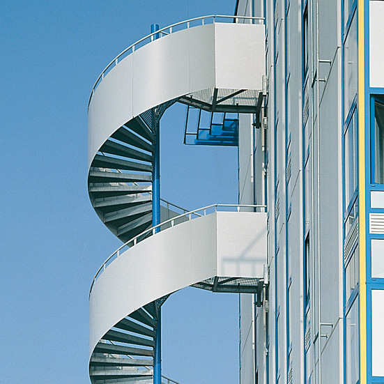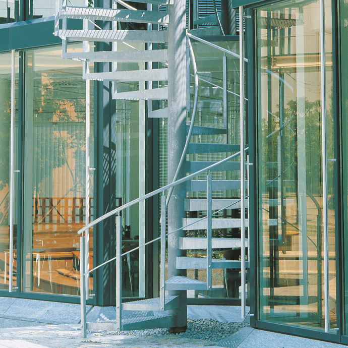 SPRENG-Systemtreppen wurden speziell für den Bedarf in der Industrie und als Fluchttreppen entwickelt.