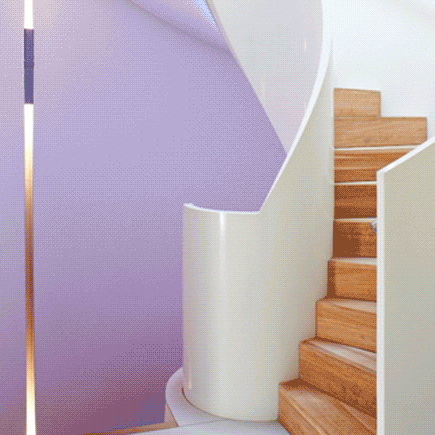 Treppenuntersicht geschlossen mit transluzenter Folie mit einer verschiedenfarbigen Hinterleuchtung.